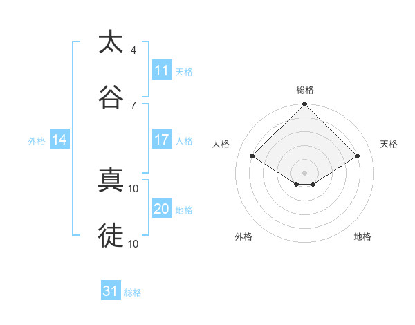 太谷 真徒さんを姓名の画数から五運を鑑定