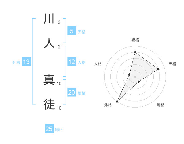 川人 真徒さんの外格は13画の5点!