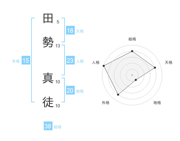 田勢 真徒さんの総格は38画の4点!