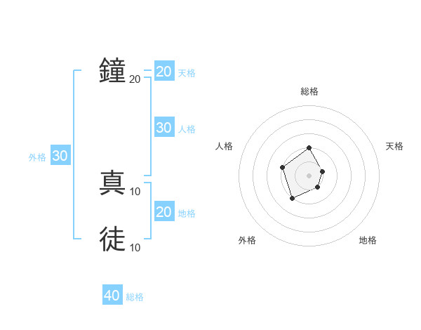 鐘 真徒さんの総格は40画の2点!