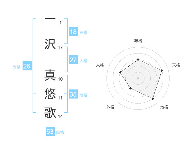 一沢 真悠歌さんを姓名の画数から五運を鑑定