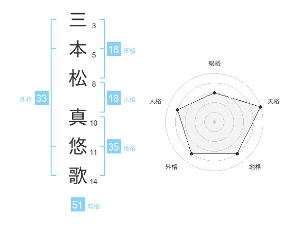 三本松 真悠歌さんを姓名の画数から五運を鑑定