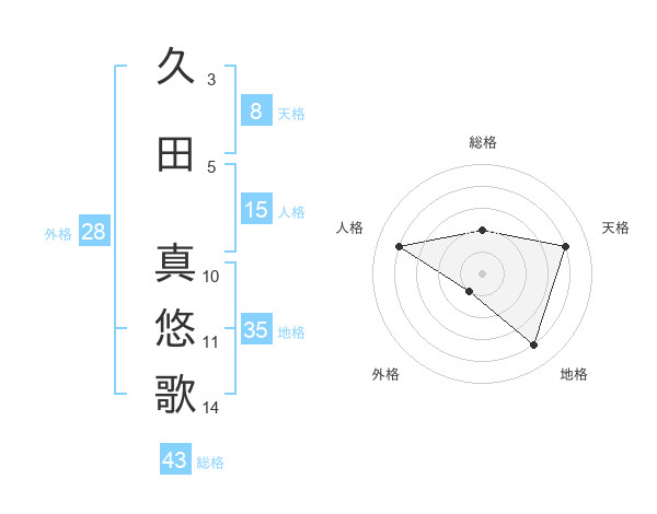 久田 真悠歌さんを姓名の画数から五運を鑑定