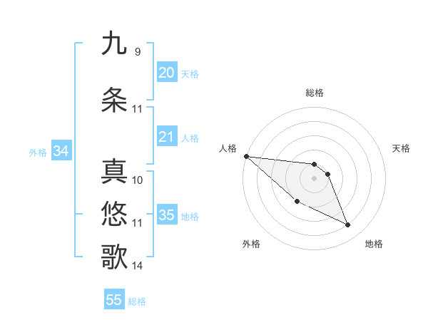 九条 真悠歌さんを姓名の画数から五運を鑑定