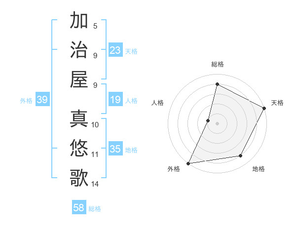 加治屋 真悠歌さんを姓名の画数から五運を鑑定