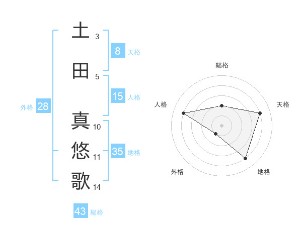 土田 真悠歌さんを姓名の画数から五運を鑑定