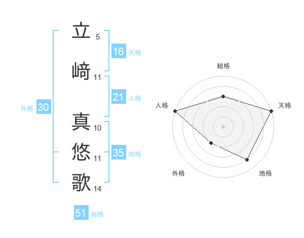 立﨑 真悠歌さんを姓名の画数から五運を鑑定