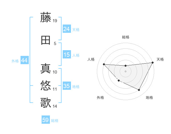 藤田 真悠歌さんを姓名の画数から五運を鑑定