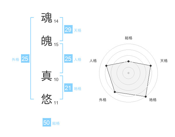 魂魄 真悠さんの総格は50画の2点!