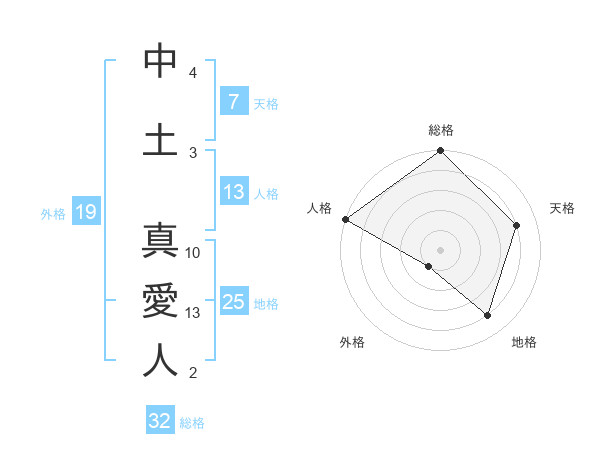 中土 真愛人さんを姓名の画数から五運を鑑定
