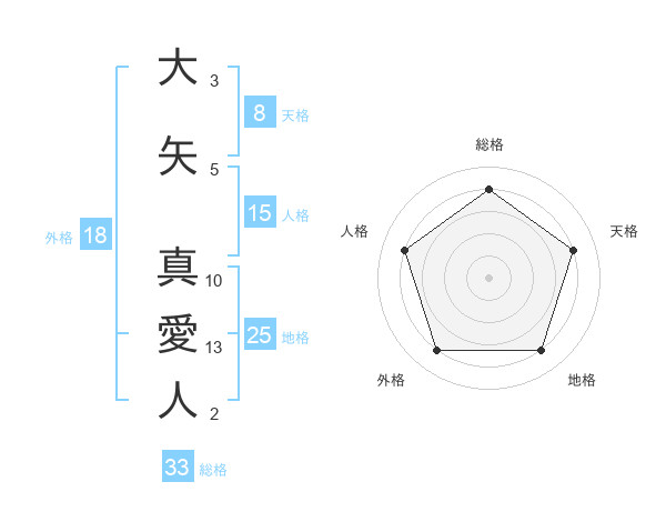 大矢 真愛人さんを姓名の画数から五運を鑑定