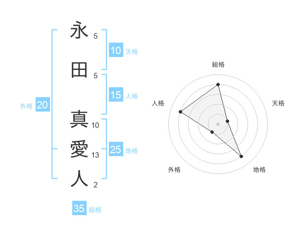 永田 真愛人さんの総格は35画の4点!