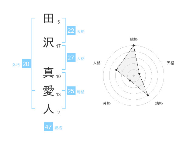 田沢 真愛人さんを姓名の画数から五運を鑑定