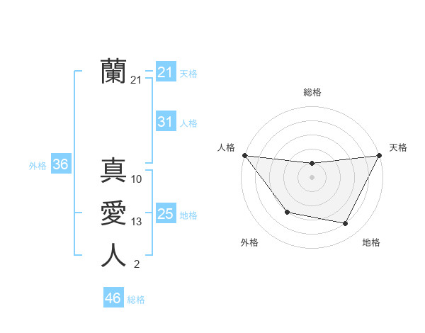 蘭 真愛人さんを姓名の画数から五運を鑑定
