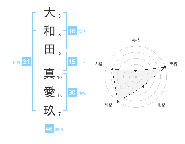 大和田 真愛玖さんを姓名の画数から五運を鑑定