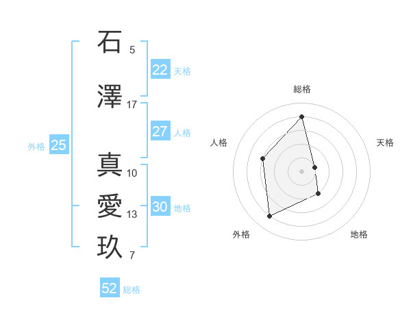 石澤 真愛玖さんの総格は52画の4点!