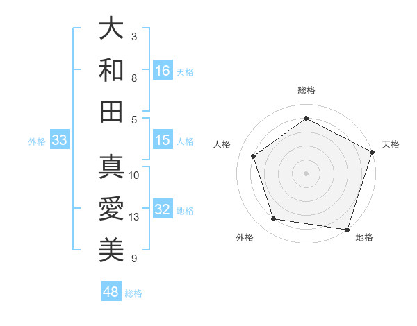 大和田 真愛美さんを姓名の画数から五運を鑑定
