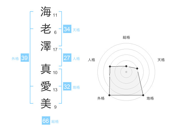 海老澤 真愛美さんを姓名の画数から五運を鑑定
