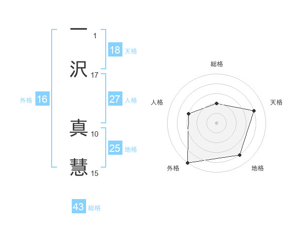 一沢 真慧さんの総格は43画の2点!