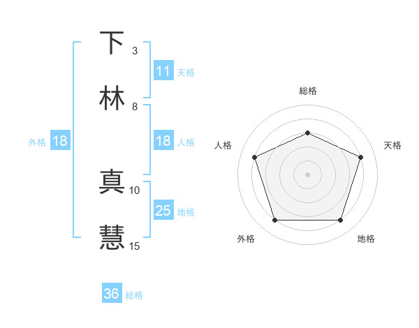 下林 真慧さんの総格は36画の3点!