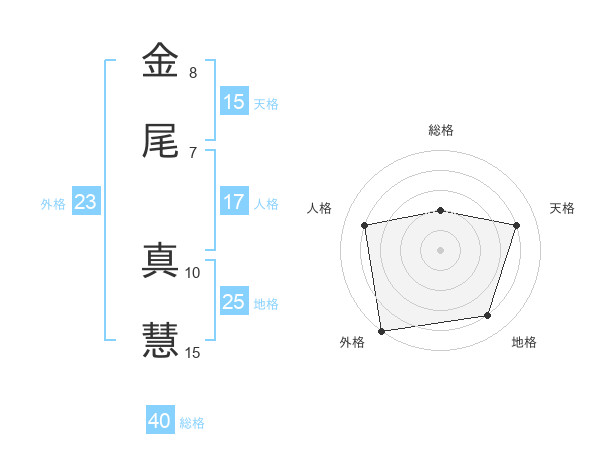 金尾 真慧さんの外格は23画の5点!