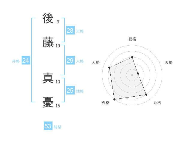 後藤 真憂さんを姓名の画数から五運を鑑定
