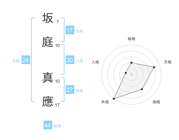 坂庭 真應さんの総格は44画の2点!