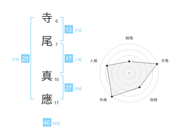 寺尾 真應さんの総格は40画の2点!