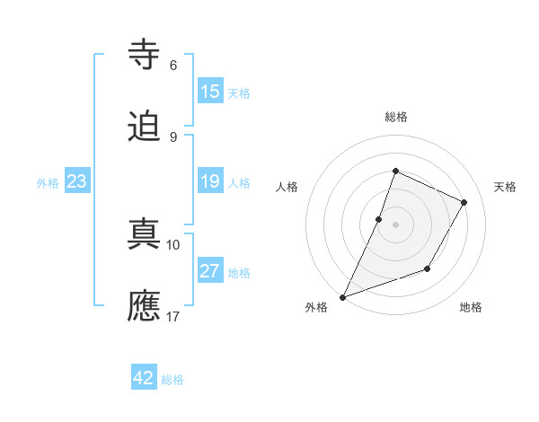 寺迫 真應さんの天格は15画の4点!