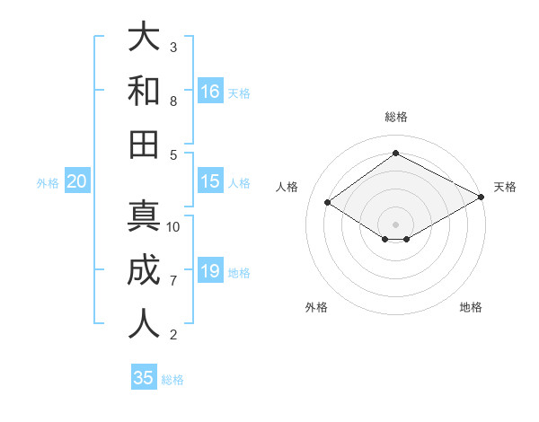 大和田 真成人さんを姓名の画数から五運を鑑定