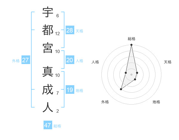 宇都宮 真成人さんを姓名の画数から五運を鑑定