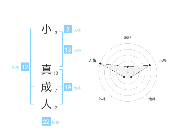 小 真成人さんの総格は22画の1点
