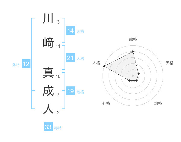 川﨑 真成人さんの総格は33画の4点!