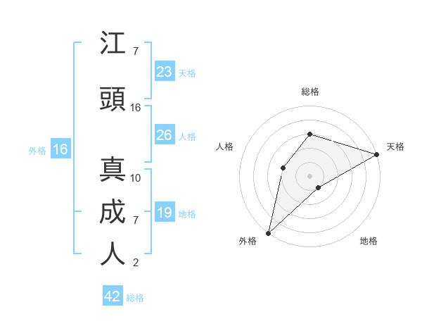 江頭 真成人さんを姓名の画数から五運を鑑定
