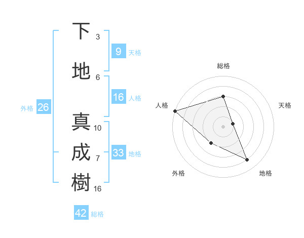 下地 真成樹さんを姓名の画数から五運を鑑定