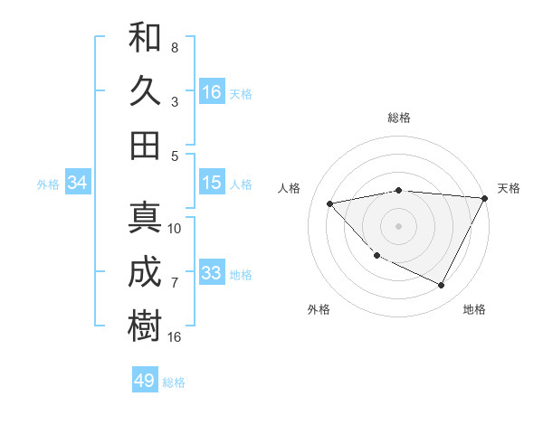 和久田 真成樹さんを姓名の画数から五運を鑑定