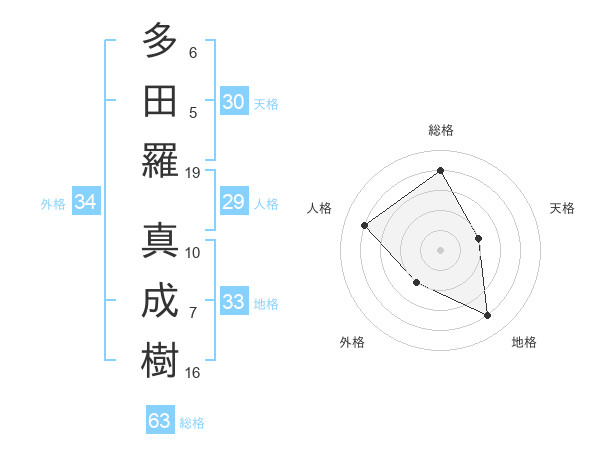 多田羅 真成樹さんの総格は63画の4点!
