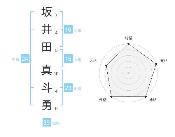 坂井田 真斗勇さんの総格は39画の5点!