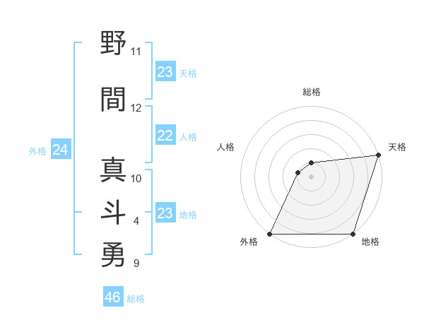 野間 真斗勇さんの外格は24画の5点!