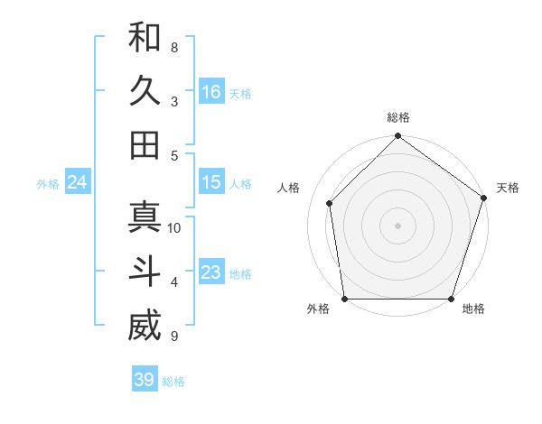 和久田 真斗威さんの総格は39画の5点