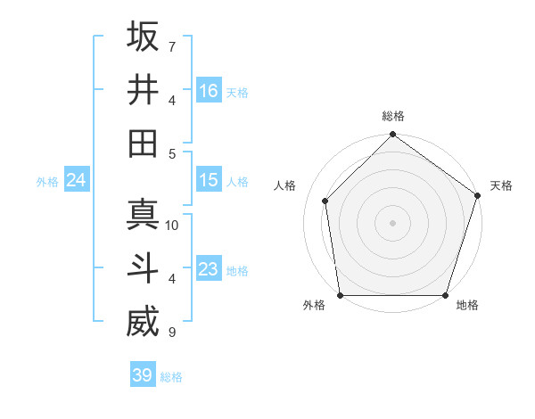 坂井田 真斗威さんを姓名の画数から五運を鑑定