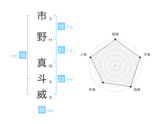 市野 真斗威さんを姓名の画数から五運を鑑定