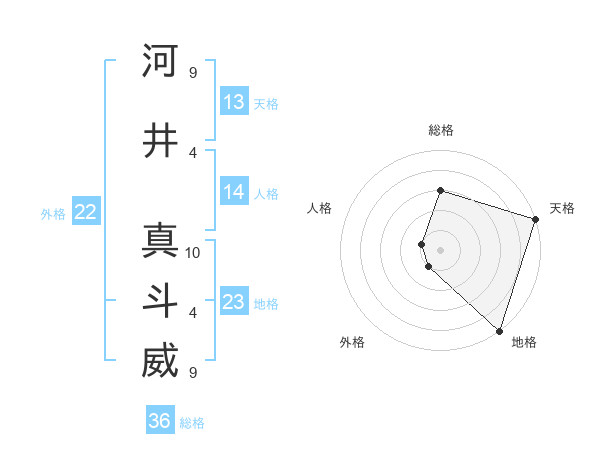 河井 真斗威さんを姓名の画数から五運を鑑定