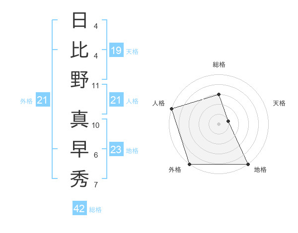 日比野 真早秀さんを姓名の画数から五運を鑑定