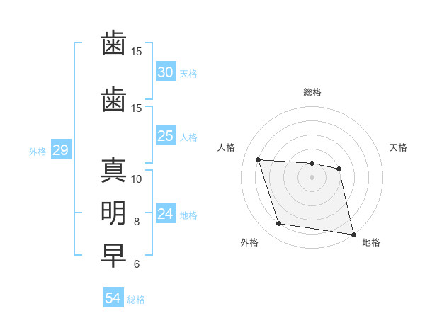 歯歯 真明早さんの総格は54画の1点!