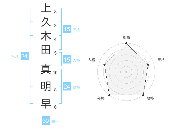 上久木田 真明早さんを姓名の画数から五運を鑑定