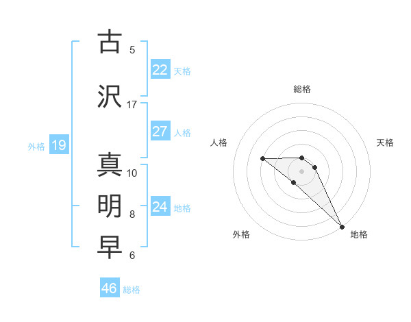 古沢 真明早さんを姓名の画数から五運を鑑定