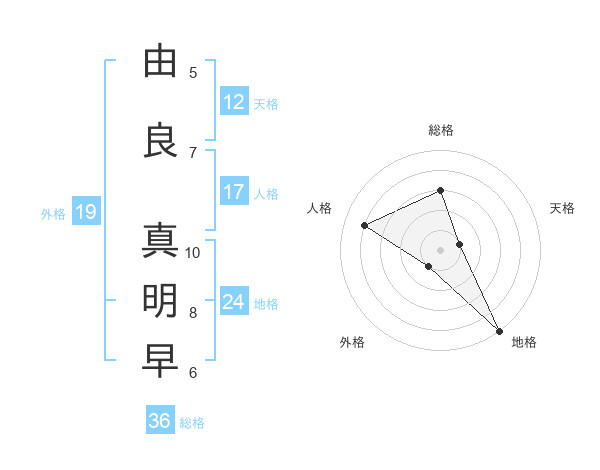 由良 真明早さんの地格は24画の5点!