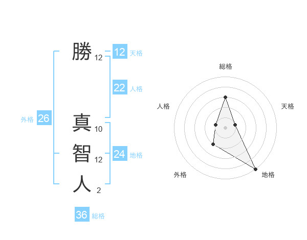 勝 真智人さんの天格は12画の1点!