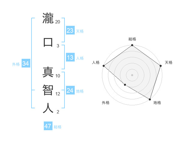 瀧口 真智人さんの総格は47画の5点!
